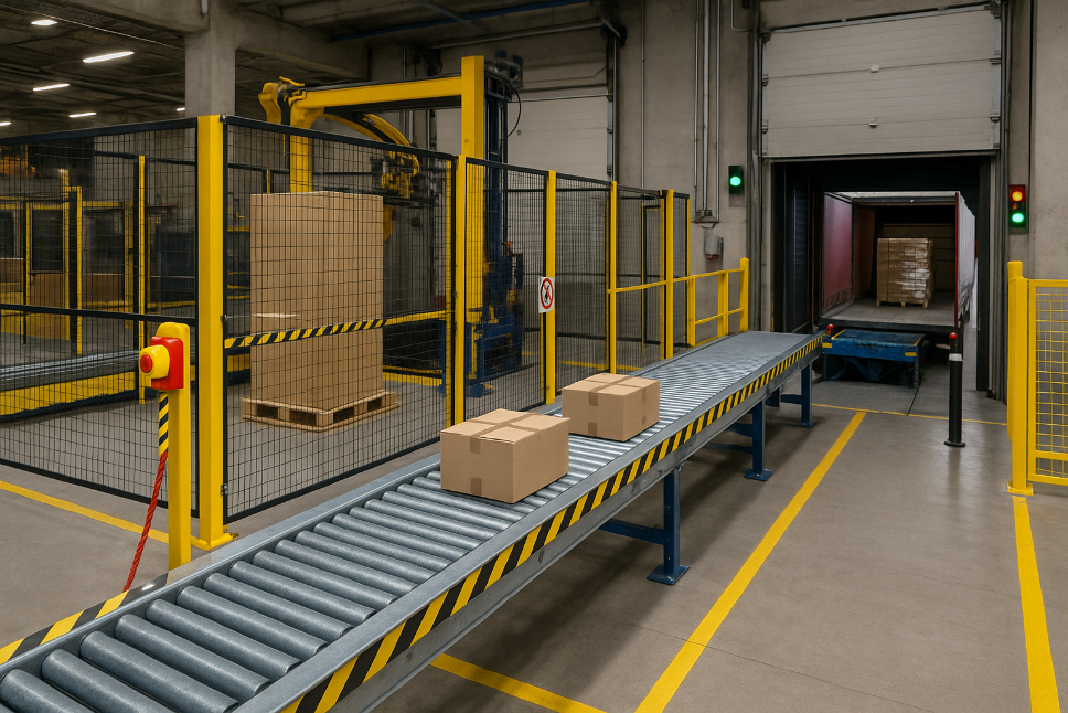 В складской логистике опасные ситуации чаще всего возникают там, где встречаются люди и техника: вдоль конвейеров, у ворот погрузки-разгрузки и вокруг паллетайзеров. Ниже - профессиональное руководство: какие риски здесь типичны, как проектировать «безопасные зоны» и что реально работает в эксплуатации.
